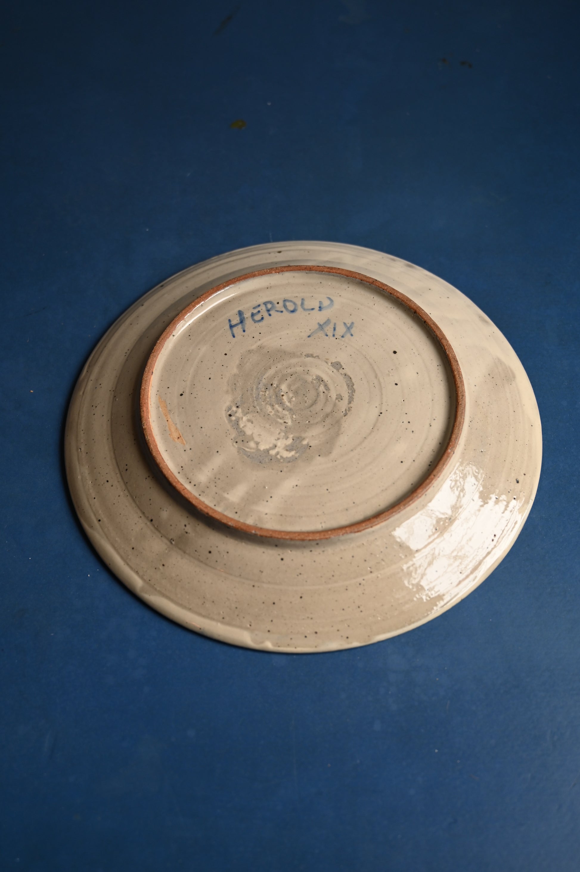 Hand painted blue and white serving plate. Signed Herold on verso. 11" D, 8" Bowl D.