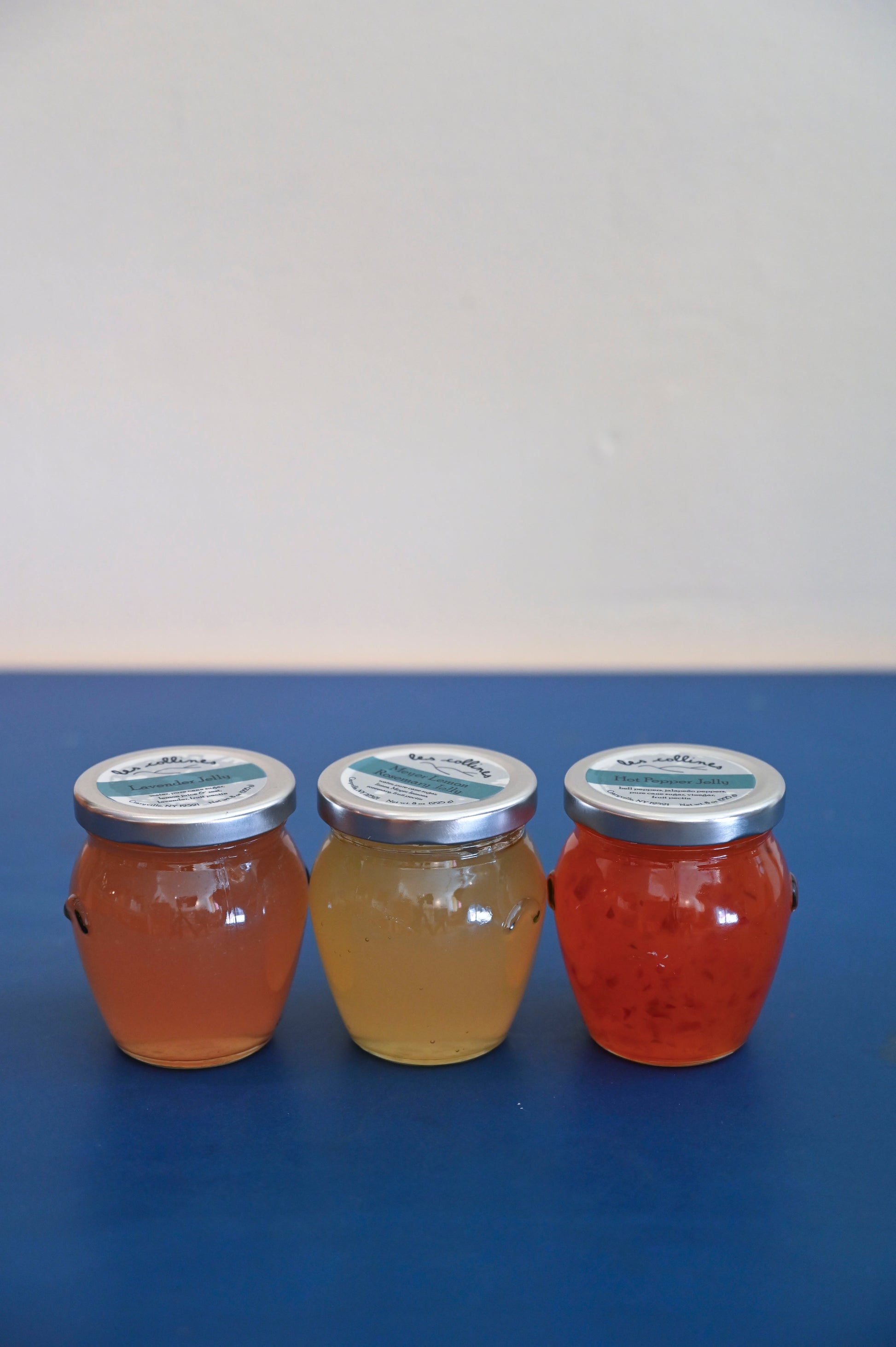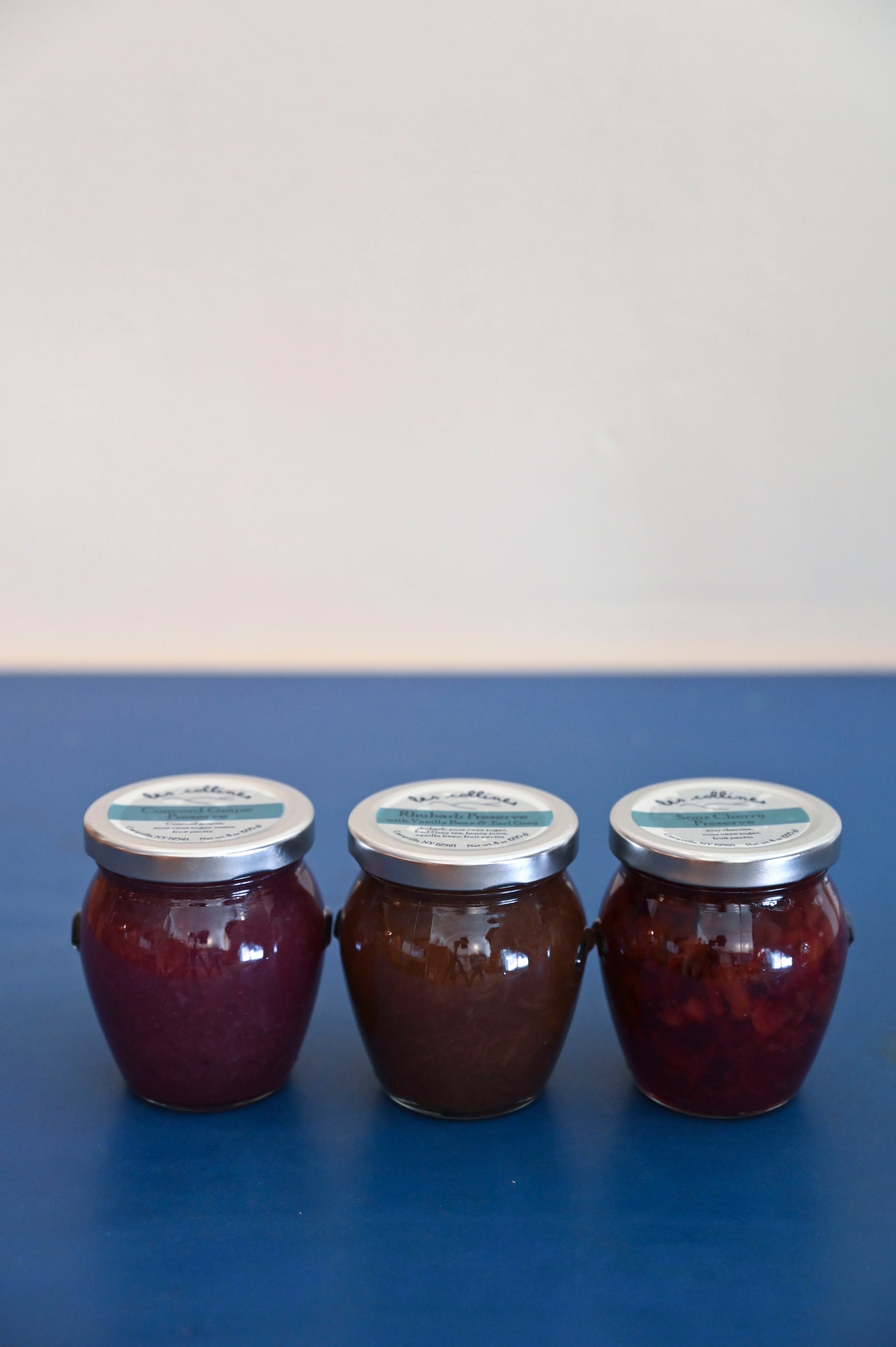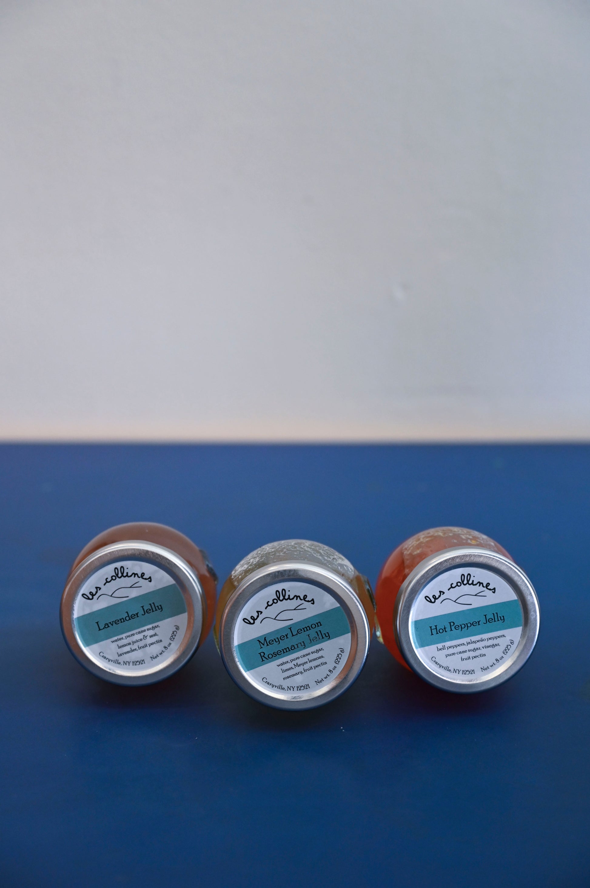 Choose from our favorites: Hot Pepper Jelly, Lavender Jelly, Meyer Lemon Rosemary Jelly, Concord Grape Preserve, Rhubarb Preserve with Vanilla Bean and Earl Grey, Sour Cherry Preserve.
