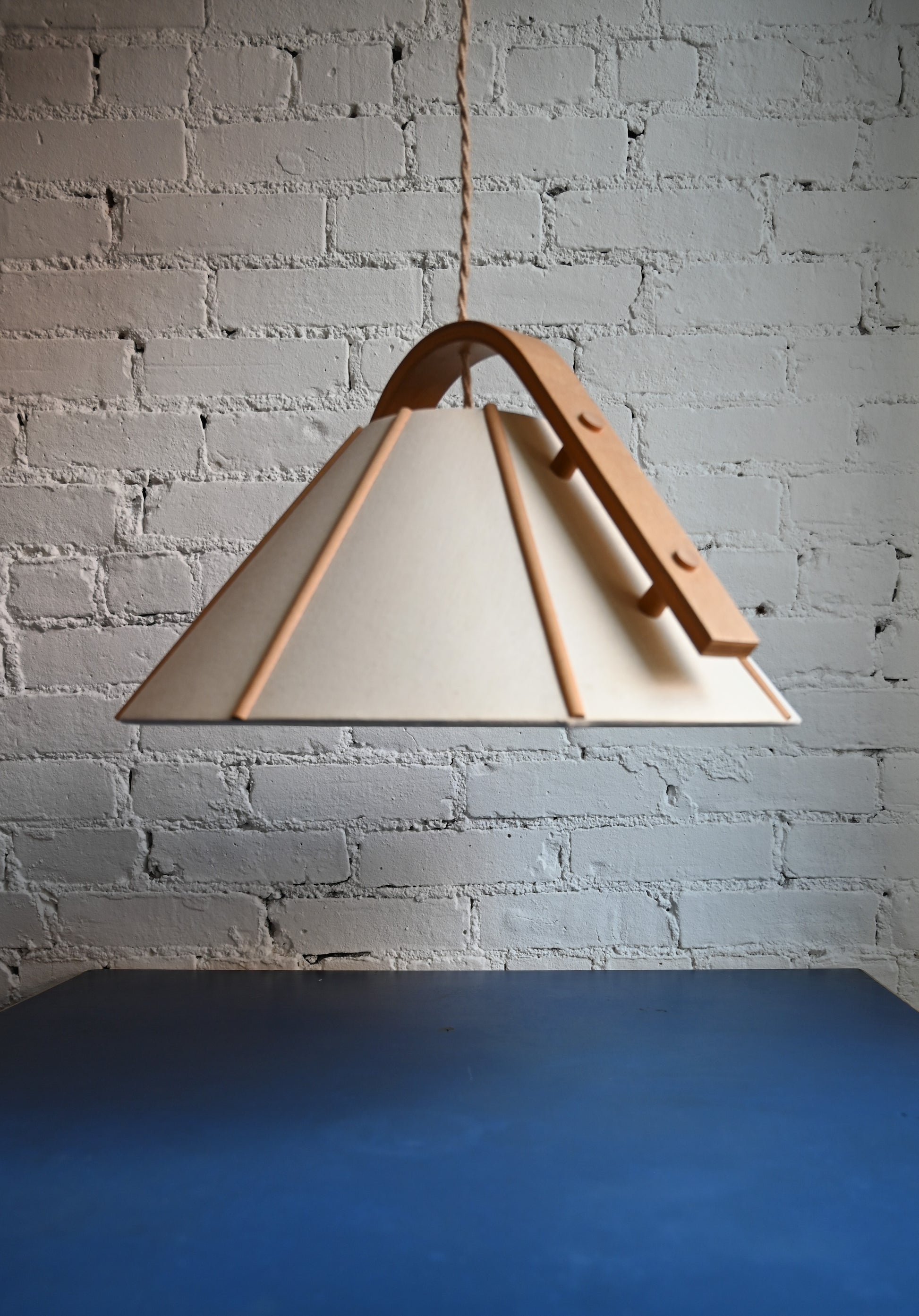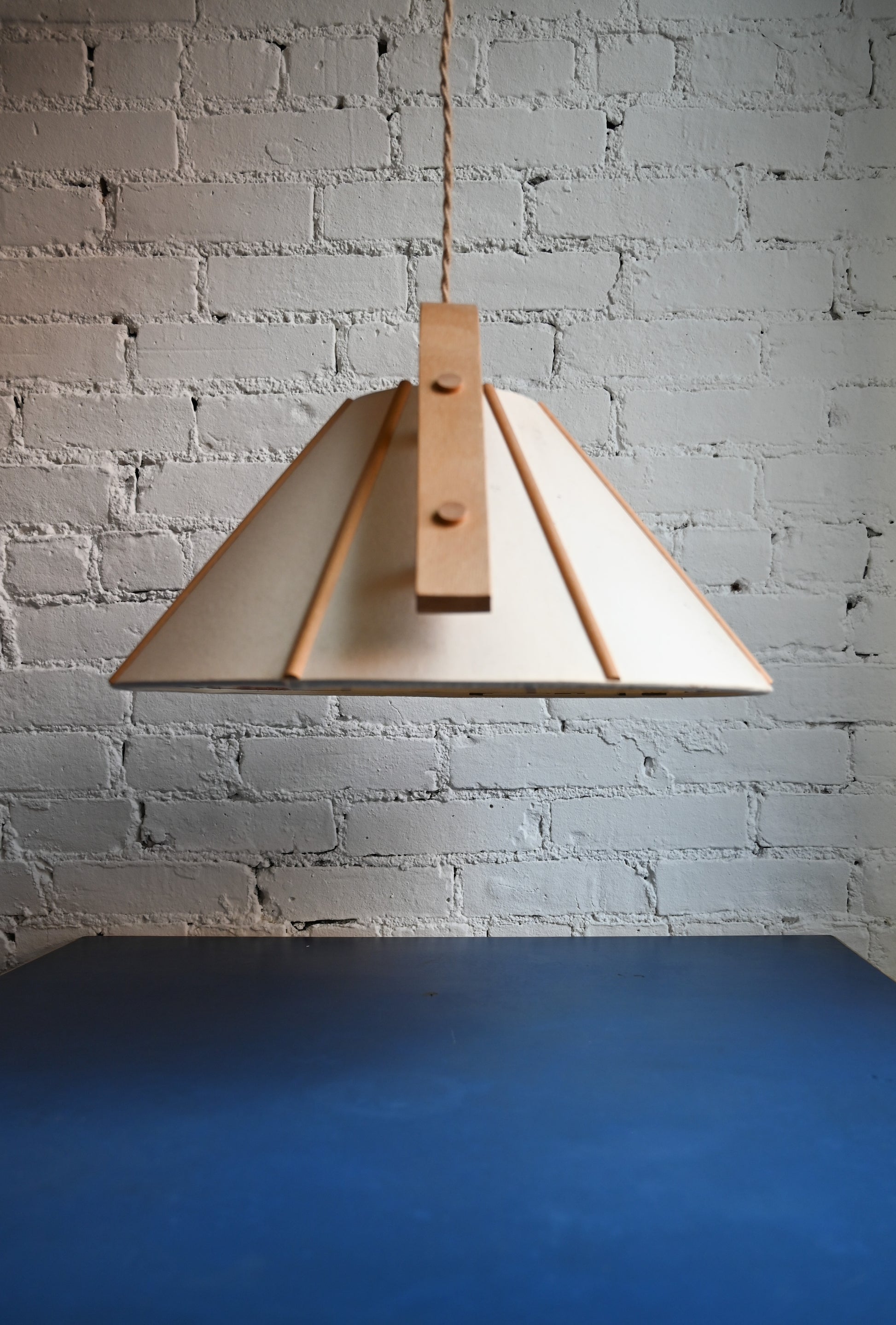Scandinavian Modern Beech wood pendant light by Jan Wickelgren. Sweden, c. 1970s. Hanging pendant light, suitable with modern light bulbs. 2 available.