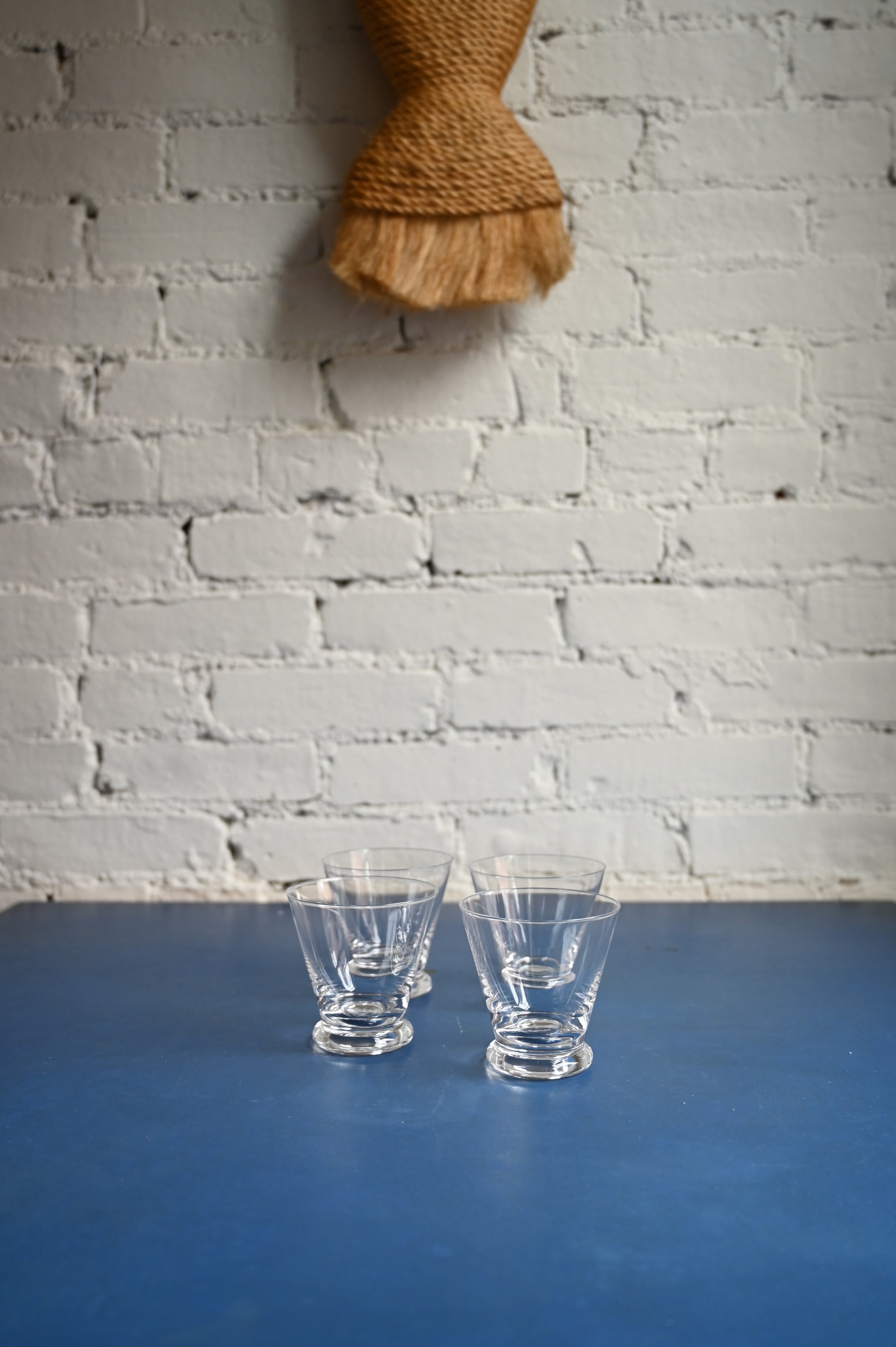 Designed by Laura Bilde for Service Projects. Lead-free crystal. Mouth blown. Dishwasher safe. Not suitable for temperatures below 0°C or above 100°C. 3.4" H, 3.4" D. 155 mL.