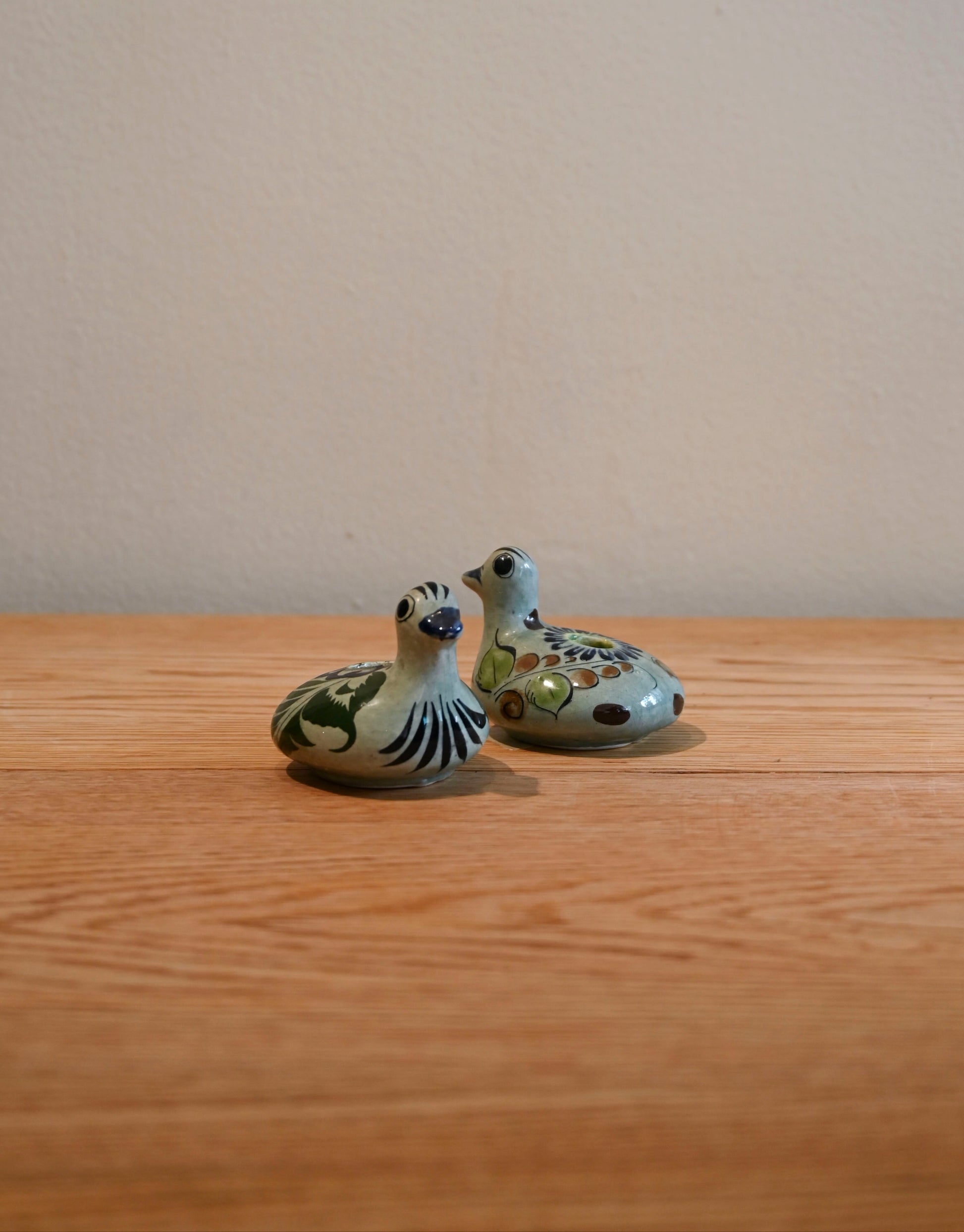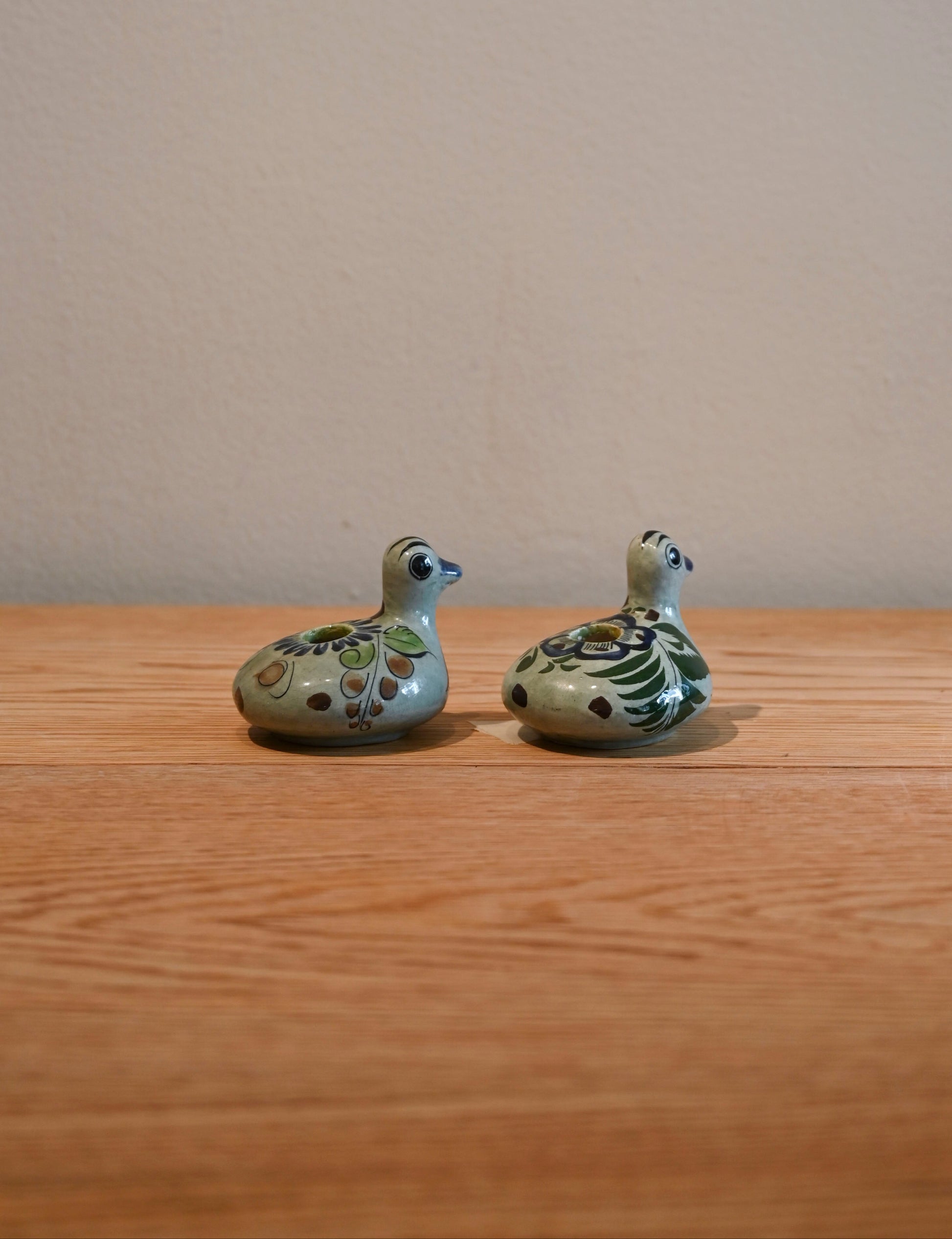 Set of two vintage ceramic bid candleholders. Dimensions: 3" w, 2.5" h each.