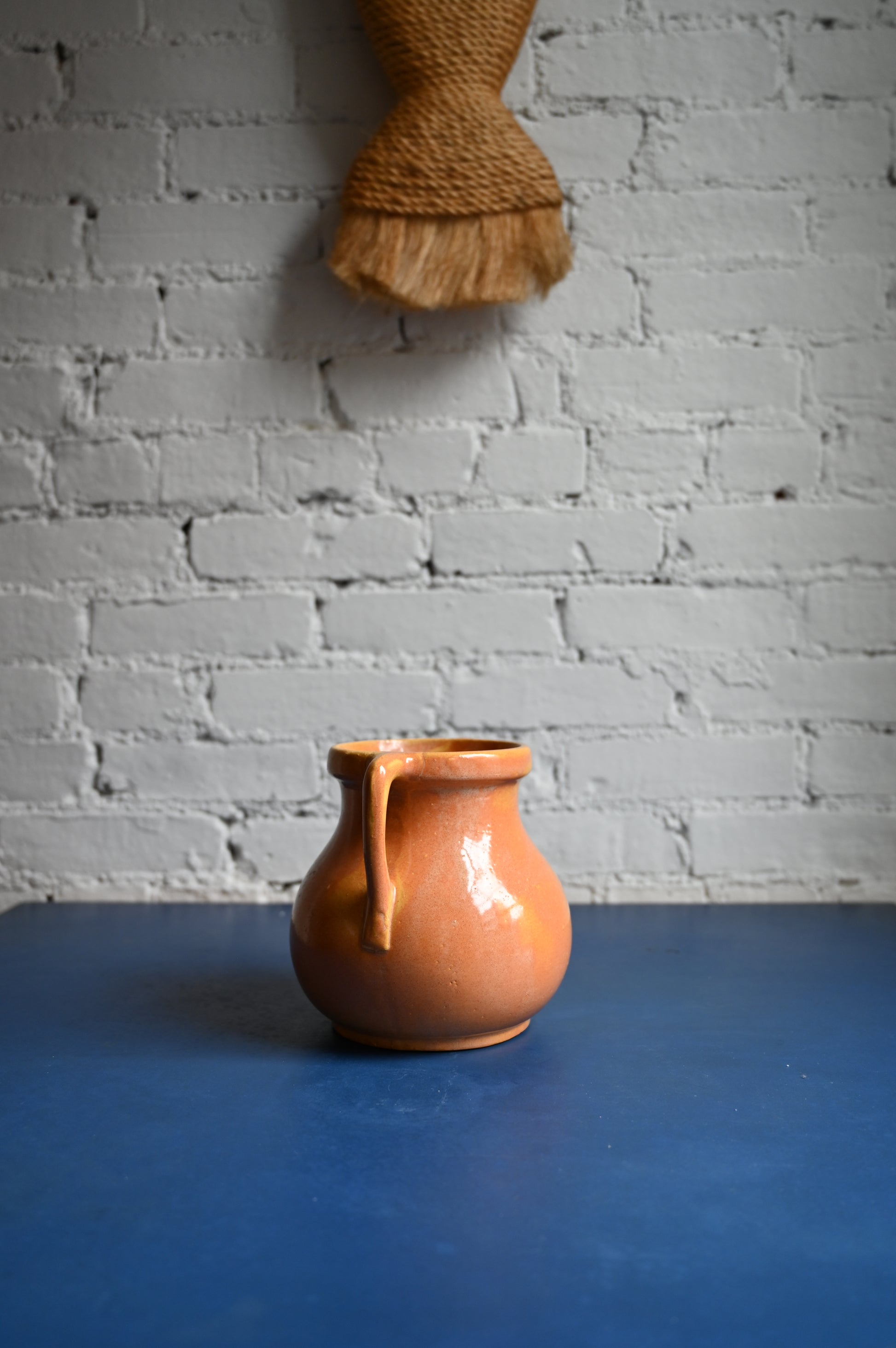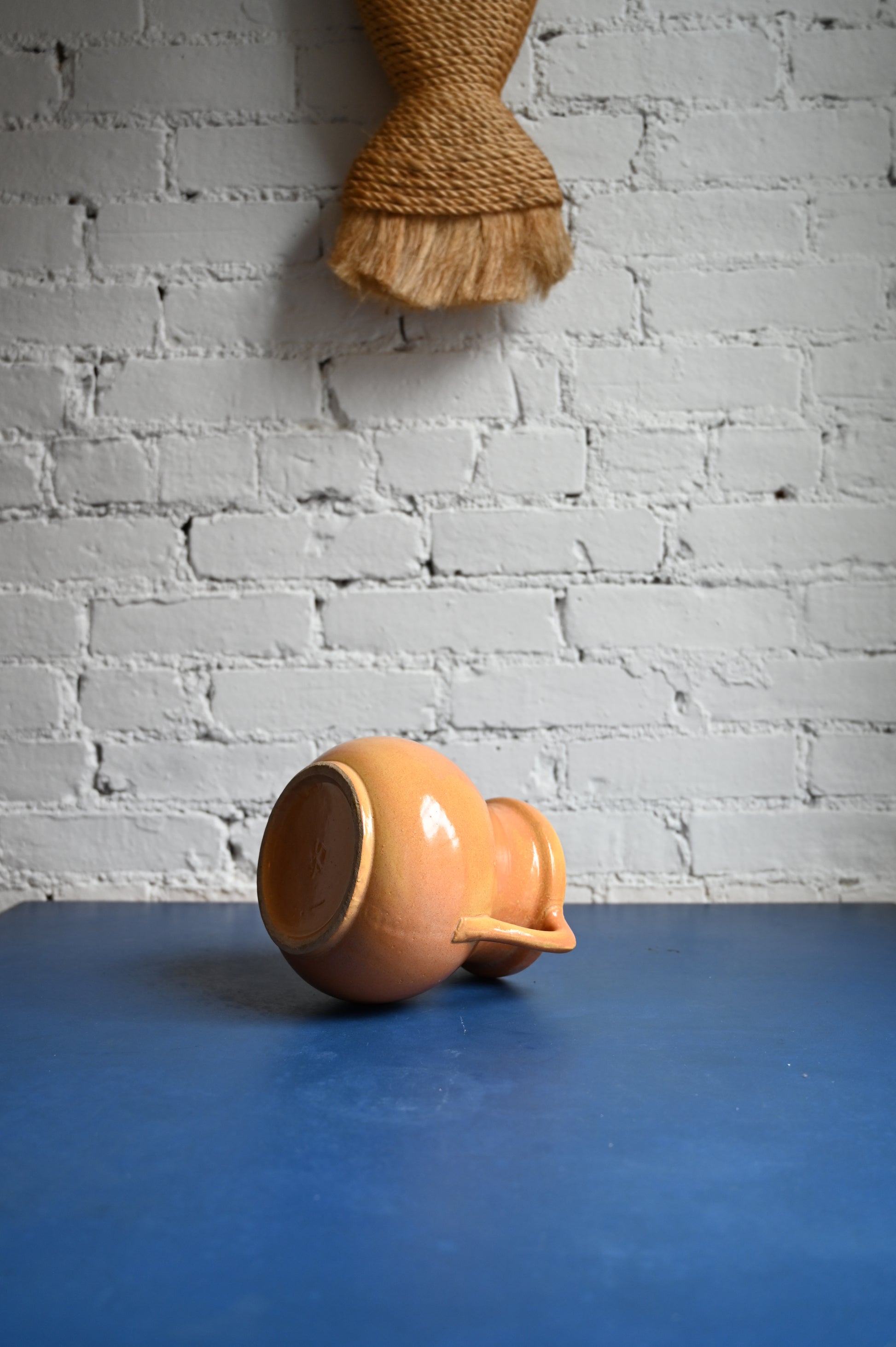 Tan vintage earthenware jug. 6.75" H, 7" W.